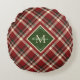 Rustic Christmas Plaid Green Monogram Name Holiday Round Cushion