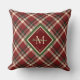Rustic Christmas Plaid Red Monogram Name Holiday Cushion