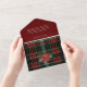 Your holiday greeting will stand out with this warm and rustic design featuring a ruby red, green and white Christmas plaid background, editable Season's Greetings text, single photo template with red border and corner poinsettia and pine embellishment. The flaps feature additional text fields, complementary plaid and floral graphics and a custom tearaway keepsake photo.