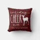 Rustic Christmas Red Buffalo Plaid Throw Pillow - with hand lettered text that reads "holiday Cheer" with a deer and personalised with your family name. A perfect addition to your country Christmas decor. Pillow is part of a collection.