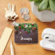 A key chain with a rustic photograph of a brown wooden table with pinecones, pine needles, snow, and Christmas ornaments. Festive and lovely.