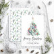Create the perfect holiday Christmas card with this modern, rustic watercolor design featuring a watercolor tree created from holly, berries, pine cones and fronds, and bullfinch birds, with a natural star atop the tree, with hand lettered script typography. The back of the card features an all over pattern of mistletoe, stars and pine sprigs. Copyright The Christmas Shop, all rights reserved.