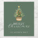 Rustic Christmas Tree In Basket Dusty Green Wine Label