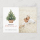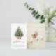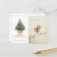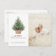 Simple rustic greeting holiday postcard features watercolor Christmas pine tree in a basket. Paired with modern and script typography and your favorite photo.