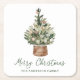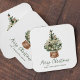 Bring warmth and festive charm to your holiday entertaining with this elegant Christmas coaster featuring a hand-painted evergreen tree adorned with neutral blush, champagne, green, and golden caramel-toned ornaments accented by soft white lights. The tree sits in a woven wicker basket, creating a cozy farmhouse look that feels both rustic and refined. “Merry Christmas” appears below in green handwritten script on a clean white background, completing the timeless design. Perfect for Christmas dinners, cocktail hours, and seasonal gatherings, this stylish coaster coordinates beautifully with matching napkins, wine labels, and gift tags from the same collection.