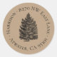 Custom holiday return address stickers personalised with your family name and address or other custom text. This modern rustic design features your text in a circle layout around a Christmas tree graphic on a faux kraft paper background. Use the design tools to edit the text fonts and colours or upload your own photos to create a one of a kind round return address label.