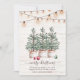 Send warm, heartfelt holiday wishes with this rustic Christmas card featuring watercolor pine trees in burlap, string lights, falling snow, and a white barn wood background. This version includes a printed message below the hand-lettered “Merry Christmas,” offering peace, joy, and happiness for the season. Perfect for those who want to send a ready-to-mail greeting with cosy farmhouse charm and a touch of modern elegance.