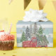 Rustic Christmas truck Trees Blue Striped Wrapping Paper