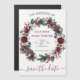 Elegant modern script rustic Christmas wedding stylish save the date magnetic card featuring a watercolor wreath of red burgundy peony roses, seasonal hunter green pine boughs, fir branches, red berries, and greenery foliage. +++++++++ Suitable for elegant rustic chic winter Christmas themed weddings.