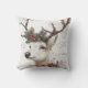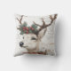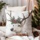 This festive throw pillow features a rustic illustration of a reindeer with a pine and red berry wreath on its antlers. The background has a vintage, textured look with handwritten script, and "Merry Christmas" is displayed in bold red text. Perfect for adding a cosy holiday touch to your Christmas season.