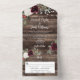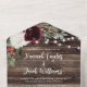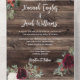 This rustic Christmas winter wedding all in one invitation with RSVP is perfect for an elegant holiday wedding. The design features beautiful watercolor white and burgundy florals with pine, holy berry and eucalyptus greenery on a wood background. This is a perfect colour scheme for a winter wedding. Make this invitation your own by including your names and all of your wedding details. For further customisation, use the advanced design tool to modify this template.