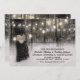 Winter wonderland wedding invitations featuring gorgeous snow covered woodlands, a carved heart in a tree with your initials, string twinkle lights, and a modern wedding template.