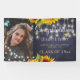 Rustic floral elegant congratulations for grad announcement or party banner featuring sunflowers bouquets, dark navy chalkboard and strings of twinkle lights, and a faux gold chic typography script.+++++++++ Easy to personalize with your picture, name, school, and class.