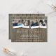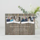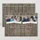 A weathered wooden slat surface stands as the background for this rustic inspired wedding shower invitation. A clothesline is strung across the boards with photos held on by clothespins. Add four of your photos in their place and your event text underneath. The image is repeated on the reverse but the photos are missing! Add registry information as well as the couple's website. Can also be used for a bridal shower or engagement party invitation. Available with matching products.
