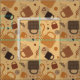 Rustic Coffee Love - Mug and Heart Pattern Fabric