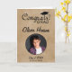 Rustic Congrats Grad Graduation Photo Card. Personalised graduation card with custom text and a photo in a round frame on a rustic beige background. Add your text inside or erase it.