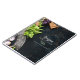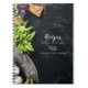 A notebook for your favourite family recipes. Fresh food, herbs, basil onions, a wooden cutting Board a herbal chopper on a painter's dark rustic canvas with paint stains. Personalise and add your family name and text.