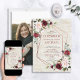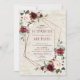 Modern, rustic and trendy, this gorgeous wedding invitation design features a faux copper rose gold geometric embellished with beautiful burgundy and pink watercolor roses, buds, and eucalyptus greenery, over a faux birch bark background. The couple's names and some wedding details are in a matching burgundy colour. The back of the card features your favourite engagement photo. Part of a matching set. Copyright Elegant Invites, all rights reserved.