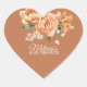 Rustic Coral Peach Flower Cupcake Topper Heart Sticker