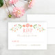 Rustic Coral Pink and Green Floral Wedding RSVP Card