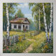 A serene countryside scene featuring a cosy wooden cottage amidst tall birch trees and vibrant wildflowers. The rustic charm evokes peace and a connection to natural beauty.