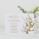 Rustic bridal shower invitation features cotton floral with pheasant feathers on light grey background. Coordinates with Rustic Cotton bridal set.