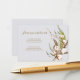 Elegant rustic wedding accommodation card features watercolor cotton floral wreath and pheasant feathers on a light grey background. Coordinates with Rustic Cotton wedding set.