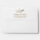 Elegant rustic wedding light grey return address envelope features watercolor cotton floral wreath and pheasant feathers and coordinating gold liner. Coordinates with Rustic Cotton wedding set.