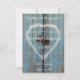 An old rustic barn door wedding invitation. The door as old flaking blue paint entrusted metal latch. A soft white heart forms the centre of this wedding design. The design has the bride and groom's name in brush stroke letters. If you would like any help customising this design please use to ask this designer a button, immediately below this text.