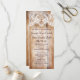 Template altered to incorporate a junior bridesmaid instead of a flower girl, and also no ushers. These vertical wedding programs have a distressed barn wood background with a printed lace design at the top. Two sided, GLOSSY 4" x 9" vertical wedding programs, set up as a template for you to modify. Just add your wedding ceremony details to the front and your wedding party to the back. If you need to add more lines of text or move things around, use the "Customise It" button. These are great as country wedding programs, cowboy wedding programs, horseshoe wedding programs, rustic wedding programs, barn wedding programs, and rural wedding programs.
