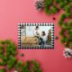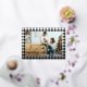 Rustic cottage style inspired holiday card featuring a classic black and white plaid border. Your family photo is elegantly framed with the plaid and stylish script for "Merry Christmas" in real gold foil. Personalise with your family name and year to send a thoughtful, stylish, and beautiful holiday card to your loved ones. The blank back side allows you to write a handwritten message should you need.