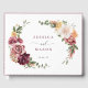 Easily edit the names and date for this guest book! This design features a wreath bouquet of eucalyptus greenery, burgundy flowers, dusty roses and golden florals. Perfect for any wedding!