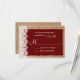 This rustic wedding invitation is perfect for any country wedding. It features a rustic printed burlap background with lace on the side. The lettering on top of a red maroon oval that has tattered edges. Perfect for a country or barn wedding. Just add your RSVP date to the card. The burlap and the lace are just printed designs. It is not actual burlap fabric or lace.