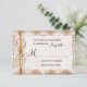 This rustic wedding invitation RSVP response card is perfect for any country style wedding, especially for couples who are using burlap in their wedding reception decor. It features a rustic printed burlap background with printed lace and a ribbon of twine on the side. Perfect for a country or barn wedding. Just add your RSVP date to the card. The burlap, twine, and lace are just printed designs. It is not actual burlap fabric, lace, or twine.