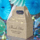 Rustic country wedding thank you favour box featuring string lights on a lights burlap background.