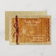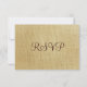 This rustic country wedding invitation RSVP features a printed burlap background with a wood grain paper and twine bow, all of which are just printed designs. Completely customisable with your own details.