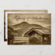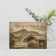 Rustic Country Cabin Mountain Wedding Invitations with a rustic brown distressed antique look country scene of an old cabin in the foreground and a meadow or field and mountains in the background. These are great for outdoor country weddings, farm weddings, ranch weddings, and for anyone who wants a rustic country wedding invitation.