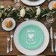 Mint green paper party plates with wedding monogram. Customisable colour and personalise name initial letters of bride and groom. Elegant typography in rustic country chic mason jar design. Cute romantic design with vintage heart icon. Faded weathered love symbol. Disposable plates for wedding, bridal shower, engagement, anniversary or bachelorette party. Customisable background colour. Perfect for outdoor barn wedding in summer around july, august, september.