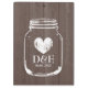 Rustic country chic mason jar wedding clipboard. Brown wood grain panel clip board for wedding planner / planning. Personalizable monogram with namen initial letters of bride and groom plus date of marriage. Cute vintage monogrammed design for outdoor summer garden / barn wedding in july, august, september etc.