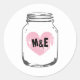 Rustic country chic mason jar wedding stickers for favours. Also good as cute envelope sealers. Vintage design for DIY summer barn / garden wedding party, cute bridal shower, engagement or anniversary. Pretty design with faded love symbol monogrammed with name initials of bride and groom / husband and wife. Customisable background colour. Personalizable with name or monogram. Pink weathered heart.