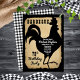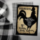 Rustic farmhouse style with aged, torn paper look and black and white buffalo checks as backgrounds for a black rooster silhouette "BARBEQUE" Birthday Party design by Holiday Hearts Designs (rights reserved).
