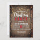Rustic Country Christmas light bulbs dinner Party invitation card. Rustic christmas winter party invitations featuring wooden and colourful fairy lights, Personalise the details on these fun rustic country Christmas party invitations for your upcoming celebration.