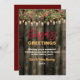 Rustic Country Christmas greenery Holiday greeting card. Rustic christmas winter greeting card featuring wooden and Christmas lights with greenery background, Personalise the details on these fun rustic country Christmas greeting card for your upcoming celebration.