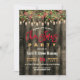 Rustic Country Christmas greenery Holiday party Invitation card. Rustic christmas winter party invitations featuring wooden and Christmas lights with greenery background, Personalise the details on these fun rustic country Christmas party invitations for your upcoming celebration.