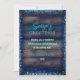 Rustic Country Christmas Holiday blue glitter greeting card. Rustic christmas winter greeting card featuring wooden and faux blue glitter border background, Personalise the details on these fun rustic country Christmas greeting cards for your upcoming celebration.
