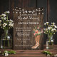 This is a gorgeous custom bridal shower invitation you can use for your rustic wedding. It features a wood background with string lights and a cowboy boot with flowers. It's a beautiful country wedding theme.