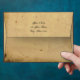 This beautiful and elegant design, called Rustic Country Cowboy Hats and Barbed Wire on Parchment Wedding, has a beautiful background made from an image of barn wood. There is an inset of old parchment with a cool frame for your text and four old fashioned corner embellishments. At the top is a strand of barbed wire and a brown cowboy hat and a white cowboy hat. This would be perfect for your rustic, country, or outdoor wedding or event! This set has invitations, save the date cards, response cards, thank you cards, table number tent cards, envelope seals, wine labels, binders, return address labels and many more day-of wedding stationery pieces, favours, and gifts available. Use the envelope seal stickers for any of your DIY gifts - these are available in both large and small sizes! All elements are printed on our high quality products, they do not include any real gold, jewels, embossing, or other textile elements. All designs are copyright Noteable Expressions, Inc. All rights reserved.