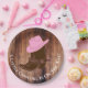 Rustic western cowgirl pink hat and boots barn wood planks print background paper plates.