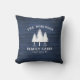Personalise your country home with beautiful, rustic themed, outdoor patio pillows, featuring your name and "Family Cabin", Ranch, Cottage or other text along with its established date and location if desired. This custom, unique design features rustic country style text with a white silhouette of pine trees on a print of wood planks in rich blue colours. To see more designs like this, feel free to visit my store here at "Zazzle.com/Rustic_Charm". Thanks.