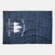 Personalise your country home with beautiful rustic themed kitchen and bar towels, featuring your name and "Family Cabin", Ranch, Cottage or other text along with its established date and location if desired. This custom, unique design features rustic country style text with a white silhouette of pine trees on a print of wood planks in rich blue colours. To see more designs like this, feel free to visit my store here at "Zazzle.com/Rustic_Charm". Thanks.